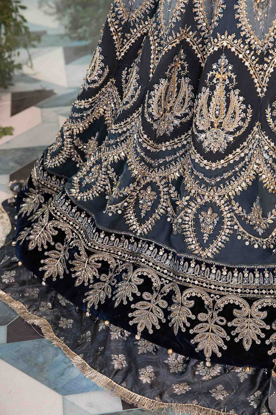 Embroidered Velvet Ghera Patti Front & Back