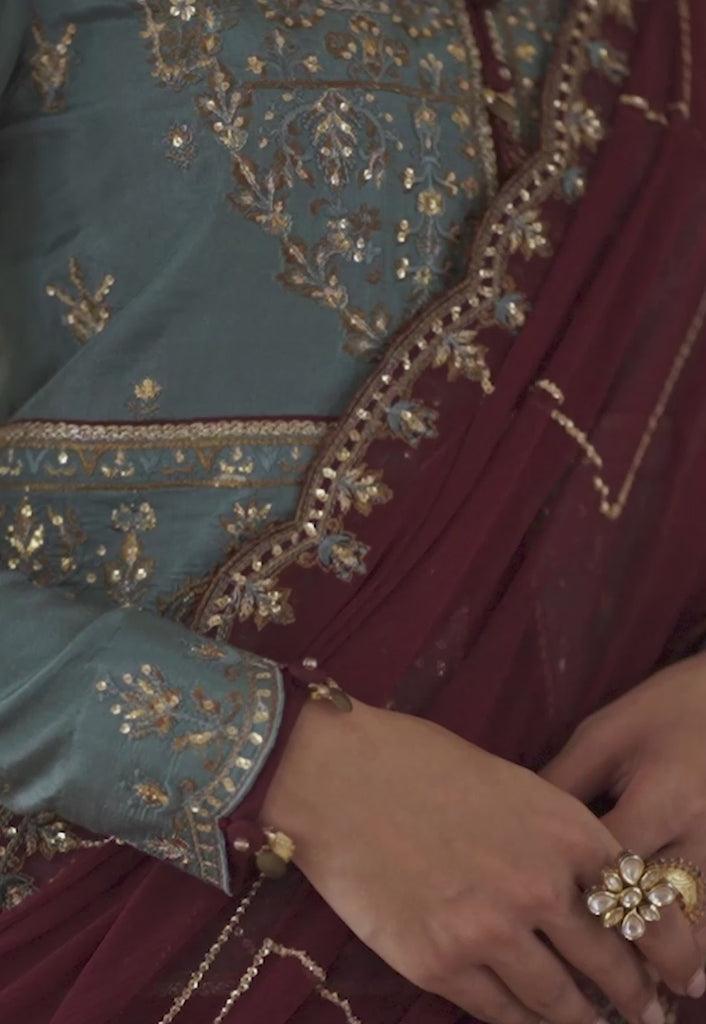 2.5 m embroidered chiffon dupatta with 2 sided border