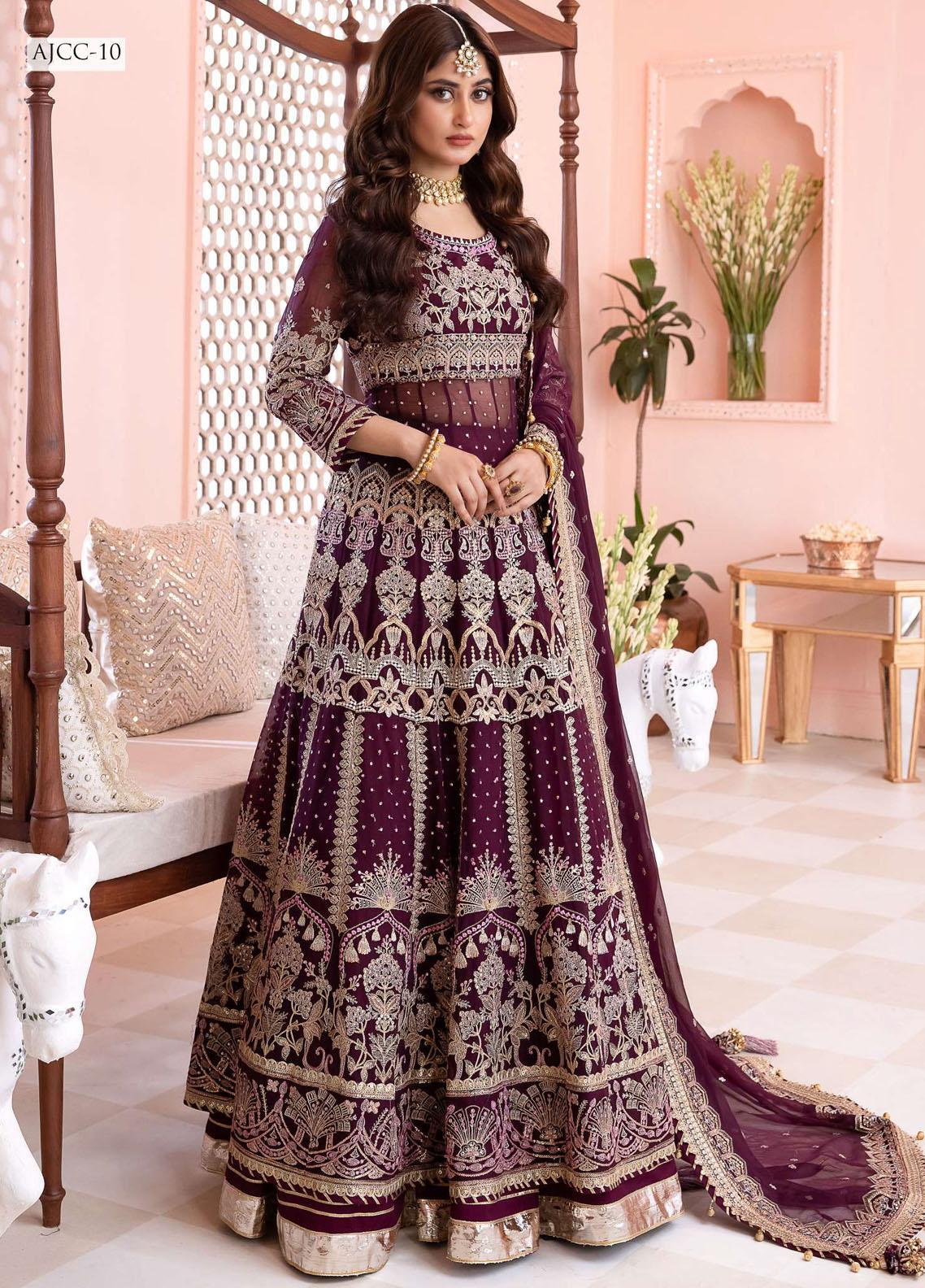 Asim Jofa Chandni Embroidered Chiffon Suits Unstitched 3 Piece AJCC-10 - Luxury Collection