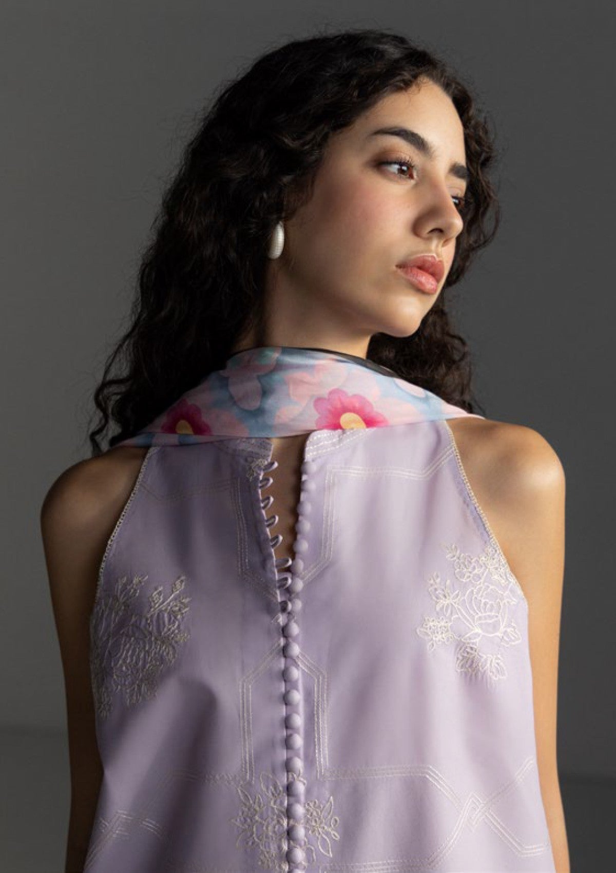 lilac, blue and pink dupatta for a soft coordinated elegance.
