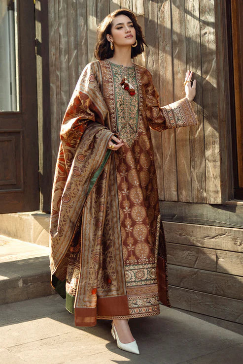 Eternal Promise" showcases luxurious jacquard fabric with an elegantly embroidered neckline and sleeves, paired with a matching jacquard shawl. Handcrafted wool tassels add a unique touch, making this ensemble perfect for any occasion where timeless elegance is desired. Elevate your style with the quality and artistry that Mushq embodies.