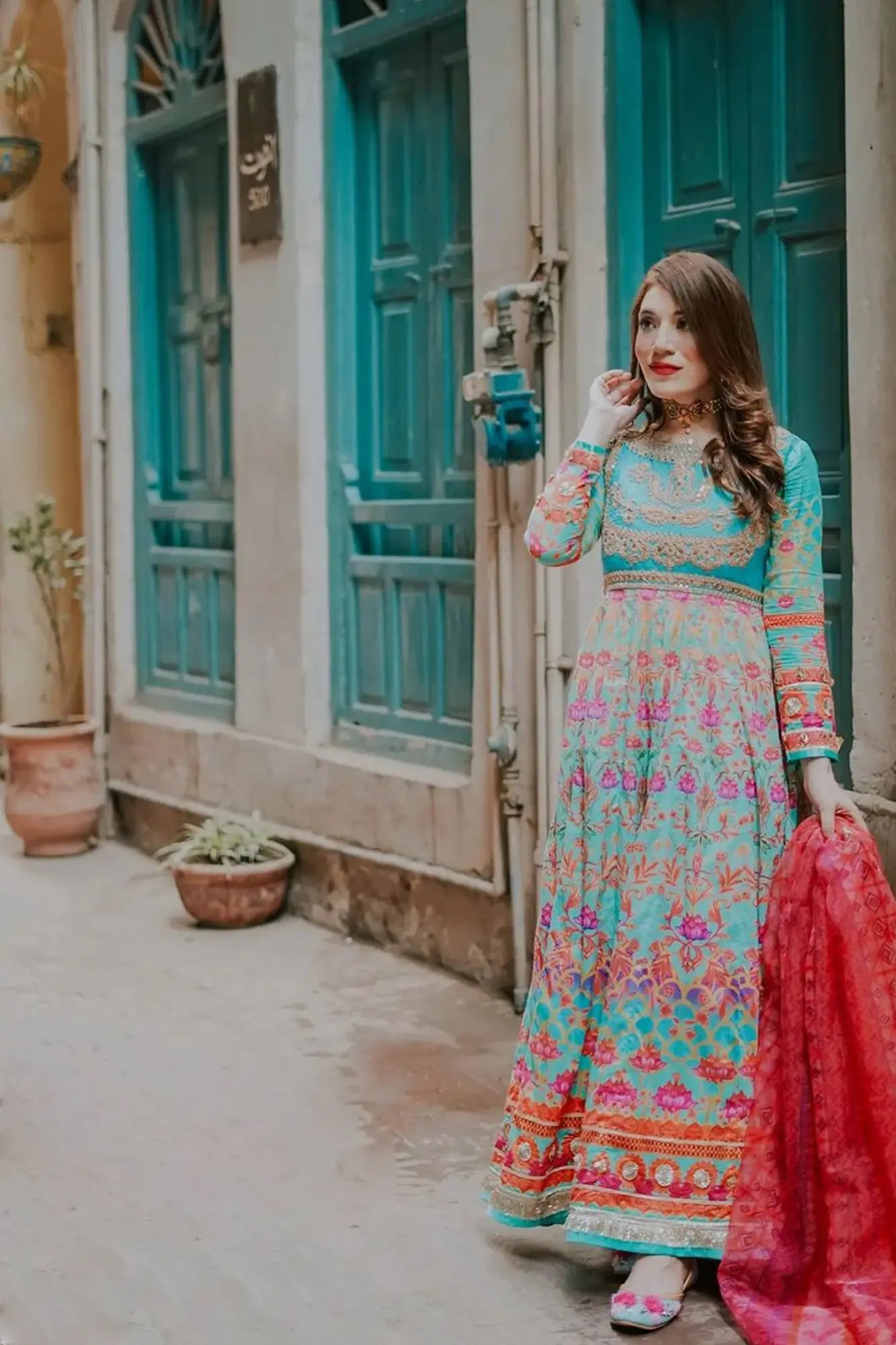 Roses do not bloom hurriedly; for beauty, like any masterpiece, takes time to blossom. Exquisite embroidery sprawling over an aqua blue base fashions a magical effect in this timeless jutti from Zari. Go all-in on celebrations!