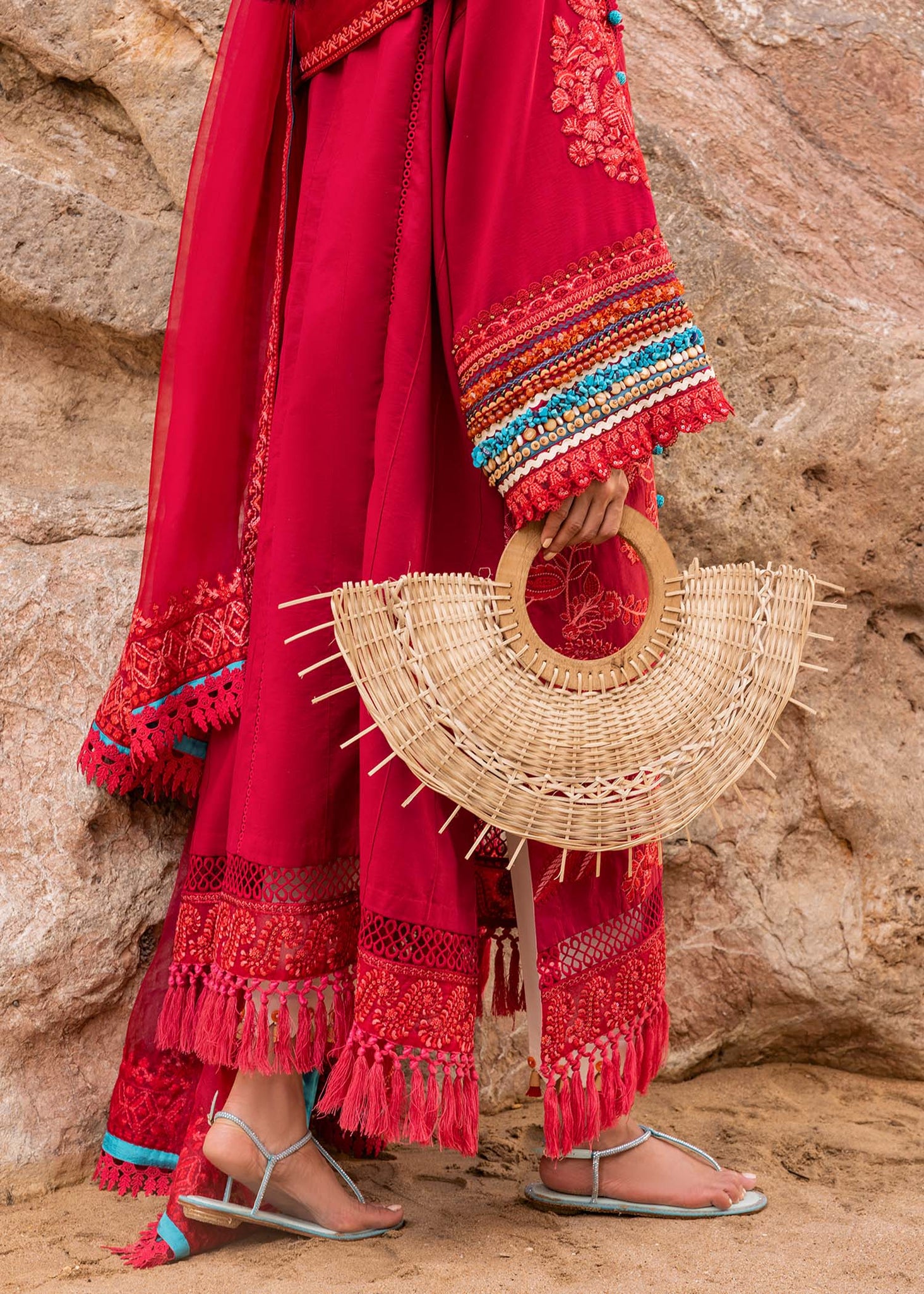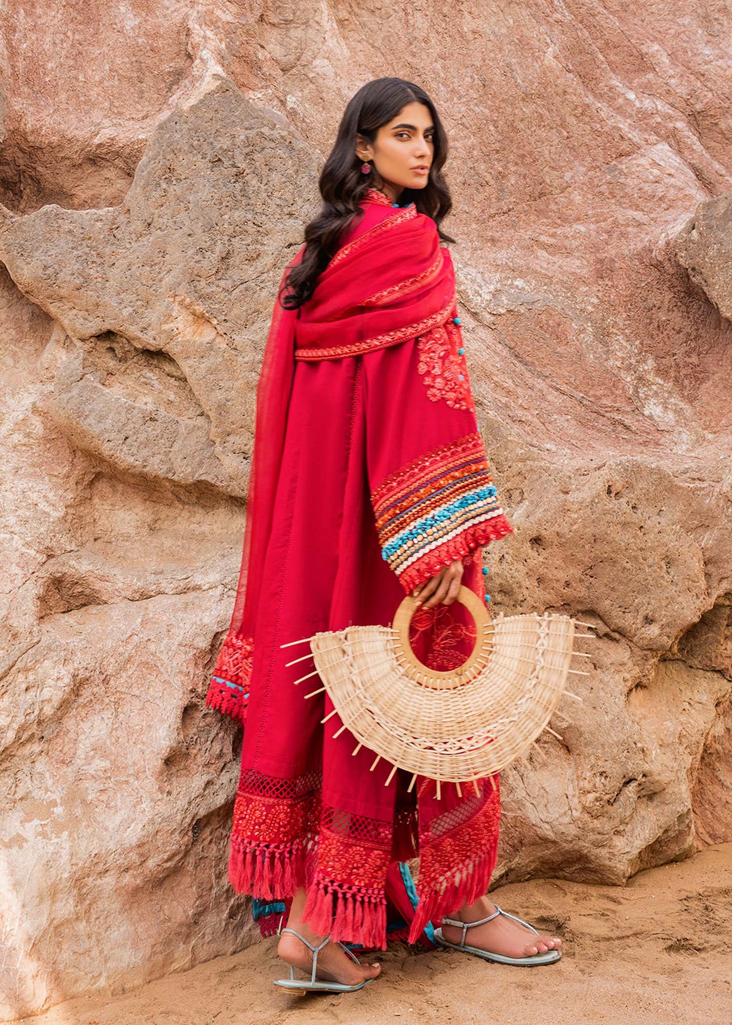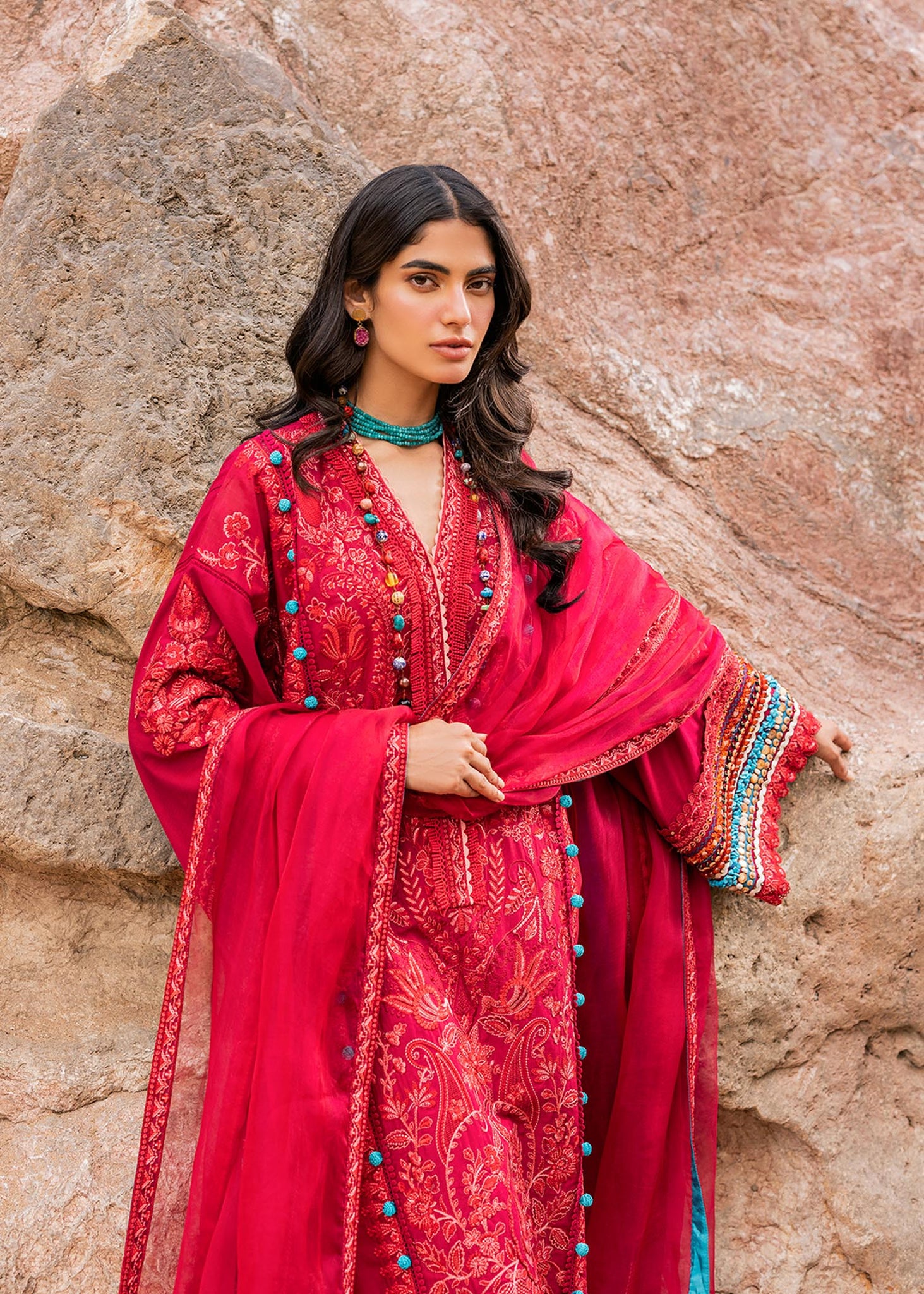 Embroidered lawn shirt features a dense pattern composed of classic paisleys and flowers. Paired with a contrast Cambric trouser and a flowy Embroidered organza formal dupatta.